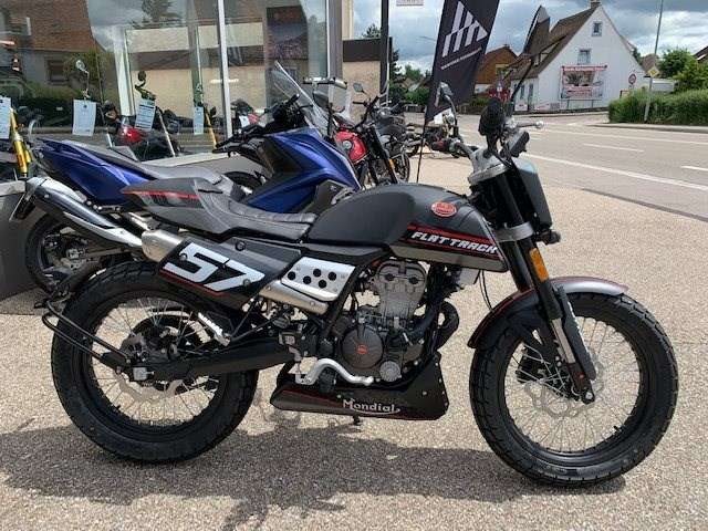 Neufahrzeug vom Vertragshändler mit Werksgarantie, die bei allen Vertragshändlern gültig ist. ____________________________________________ Wir liefern Ihr Motorrad für 65 € bis 50km /- und 119 € bis 100km/ - und 179 € bis 150 km einfache Fahrtstrecke. Über 150 km innerhalb Deutschlandes, ausgenommen der Inseln, für 219 €. ______________________________________________ Barzahlungspreis: 2.950 € Sonderfinanzierung auch ohne Anzahlung möglich. Für mehr Informationen oder einer individuellen Beratung kommen Sie gerne persönlich bei uns vorbei oder besuchen Sie uns im Internet. Scherzer GmbH Crailsheimer Str. 14 91555 Feuchtwangen Tel: 09852/67660 Es war noch nie so einfach, sich von der Masse abzuheben. Die neue F.B Mondial Flat Track 125 ABS begeistert durch die unverwechselbare Optik aus dem Flat Track Racing und ist perfekt für alle, die auch im täglichen Großstadtdschungel nicht auf Individualität verzichten wollen. Besonders markant sind die Nummerntafeln an der Seite, während die Mini-Scheinwerfer an der unteren Gabelbrücke dezent in der Hintergrund treten. Dem Flat Track Look bleibt das Bike auch beim Doppel-Endschalldämpfer, dem breiten Lenker und den 19 Zoll Speichenrädern treu. Der flüssigkeitsgekühlte Vierventil-Einzylinder bringt knapp 14 PS und 10,5 Nm Drehmoment. Das Cockpit mit TFT-Display und verschiedenen Anzeigenmodi sorgt für die nötigen Infos. Technische Daten: Motortyp: Einzylinder, Viertaktmotor mit 4 Ventilen und elektronischer Einspritzung Hubraum: 124 cm Getriebe: 6 Gänge Starter: Elektrisch Tankinhalt: 9,5 Liter Sitzhöhe: 846 mm Leergewicht: 133 kg Abgaswerte: EURO 5 Kraftstoffverbrauch (l/100 km): Ø 1,9 l CO2 Emissionen: 44 g/km Irrtümer, Änderungen und Zwischenverkauf vorbehalten!